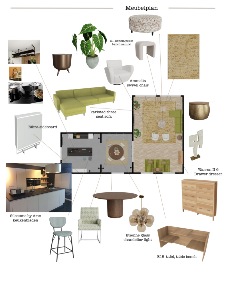 Meubelplan voor een keuken en woonkamer 🌿